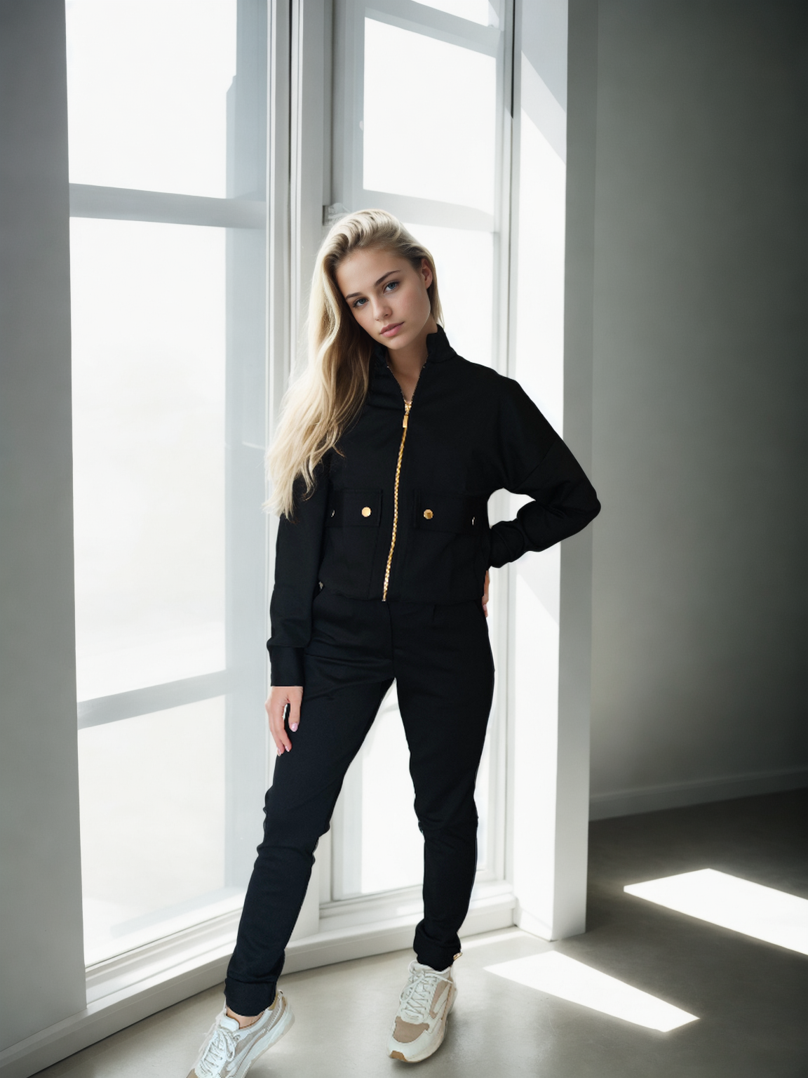 - Kelnės su užtrauktuku bei aukso spalvos sagute