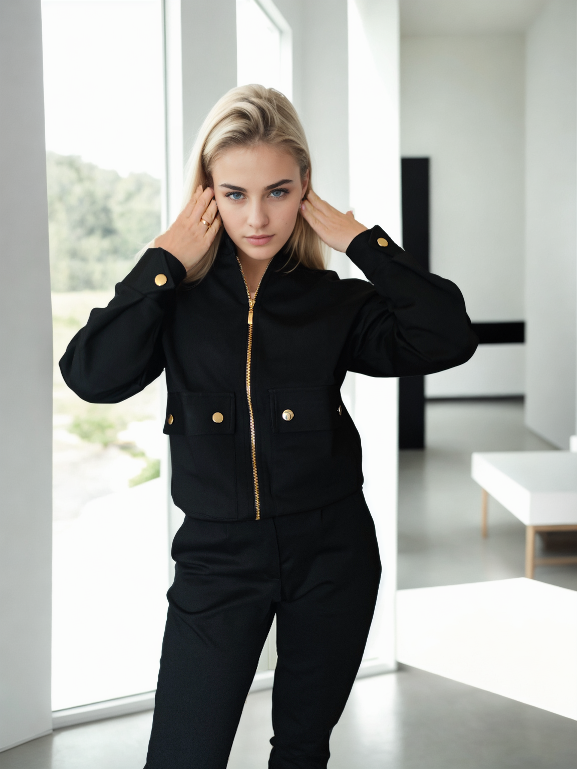 - Šonuose kišenės su aukso spalvos detalėmis