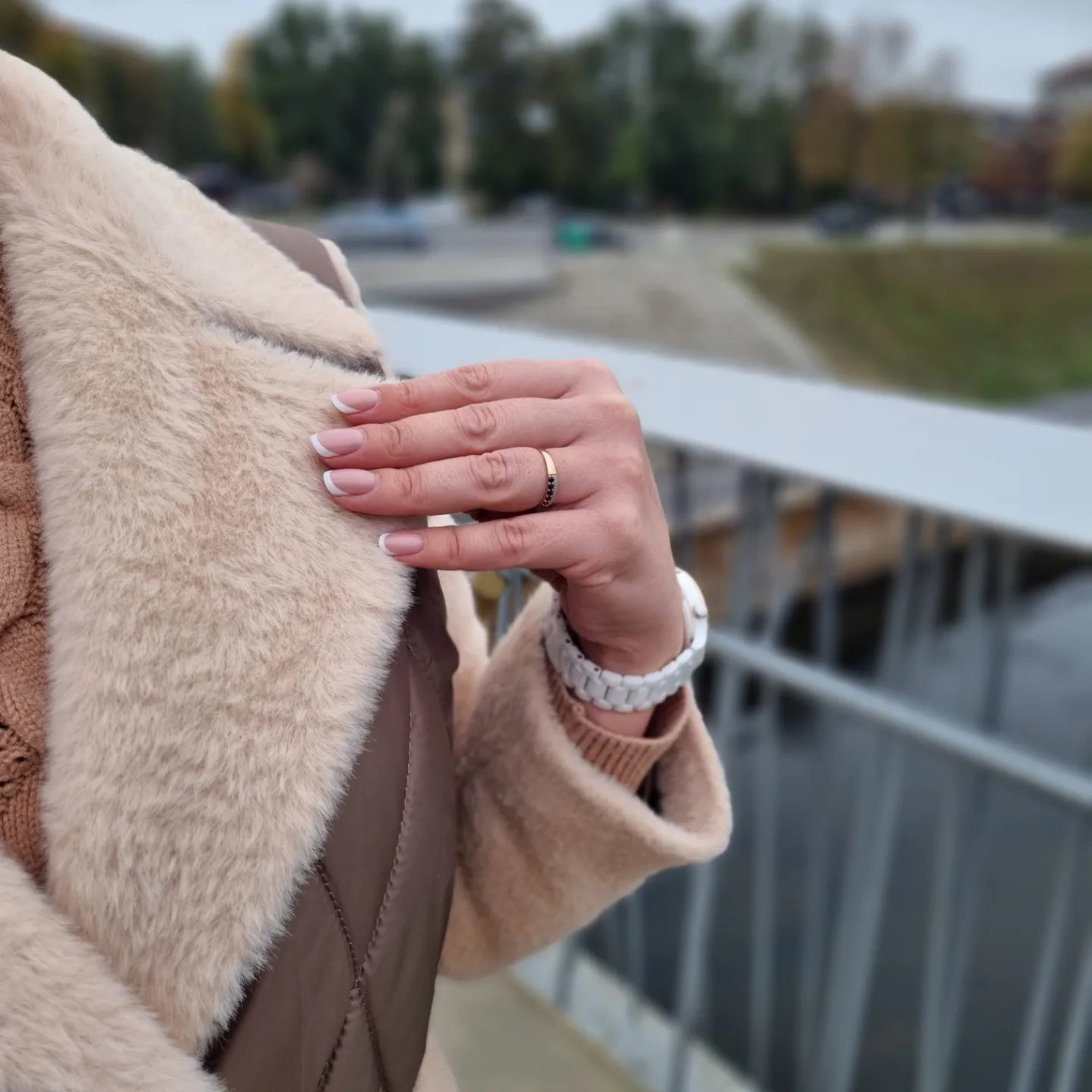 • Alpakos medžiaga apykaklėje, rankovėse bei kišenių kraštuose.